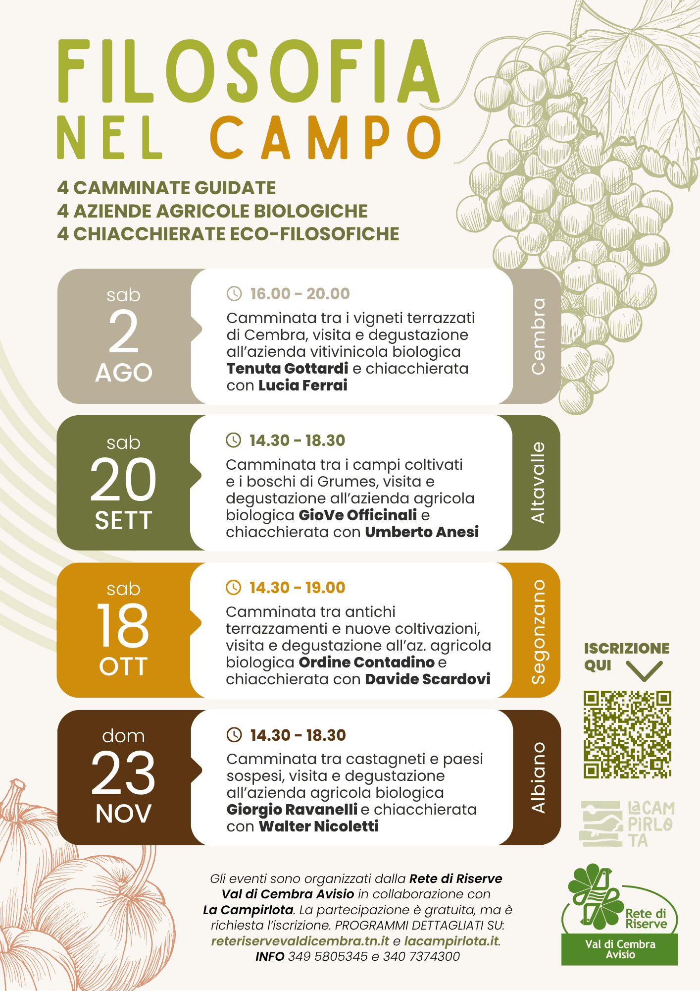 4 camminate guidate, 4 aziende agricole biologiche, 4 chiacchierate eco-filosofiche